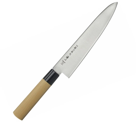 Nejvšestrannější kuchyňský nůž, určený ke krájení, řezání, drcení a krájení různých produktů. Šéfkuchařský nůž je dostatečně dlouhý na řezání opravdu velkých ploch a vhodně tvarovaný, aby uživateli zaručoval pohodlí a volnost pohybu. Tradiční rukojeť v japonském stylu je velmi lehká a dokonale se přizpůsobí tvaru ruky.