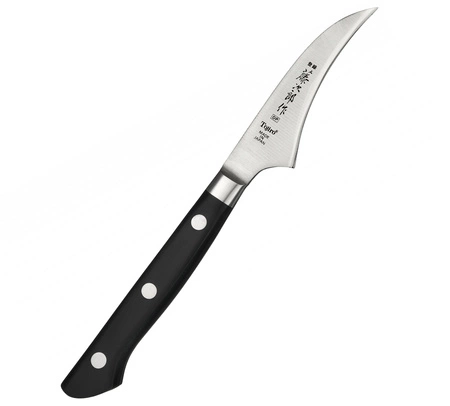 Specialista nůž se zahnutou čepelí, určené k loupání a krájení kulaté zeleniny a ovoce. Specifický tvar čepele zaručuje plnou kontrolu nad nožem a usnadňuje práci s ním přesné řezy, jako u dekorativních růží z ředkviček nebo tulipánů z rajčat. Je to ideální nástroj pro slídění po jahodách, kamenování meruněk a zpracování citrusů.